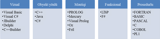 Proqramlaşdırma texnologiyasına əsasən dillər aşağıdakı kateqoriyalara bölünür: