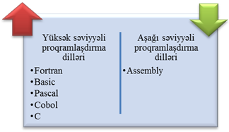 Əgər proqramlaşdırma dili konkret prosessor tipinə yönəlibsə və onun xüsusiyyətlərini nəzərə alırsa, onda ona aşağı səviyyəli proqramlaşdırma dili deyirlər. Bu dillərdə tutulan proqramlar yaddaşda az yer tutmaqla yanaşı, daha sürətlə icra olunurlar. Yüksək səviyyəli proqramlaşdırma dilləri isə adi dilə daha yaxın və insan üçün daha aydın başa düşüləndir.