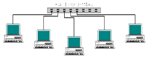 Mərkəzi qovşaq kimi HUB, kommutator və ya xüsusi server kompüteri istifadə oluna bilər.